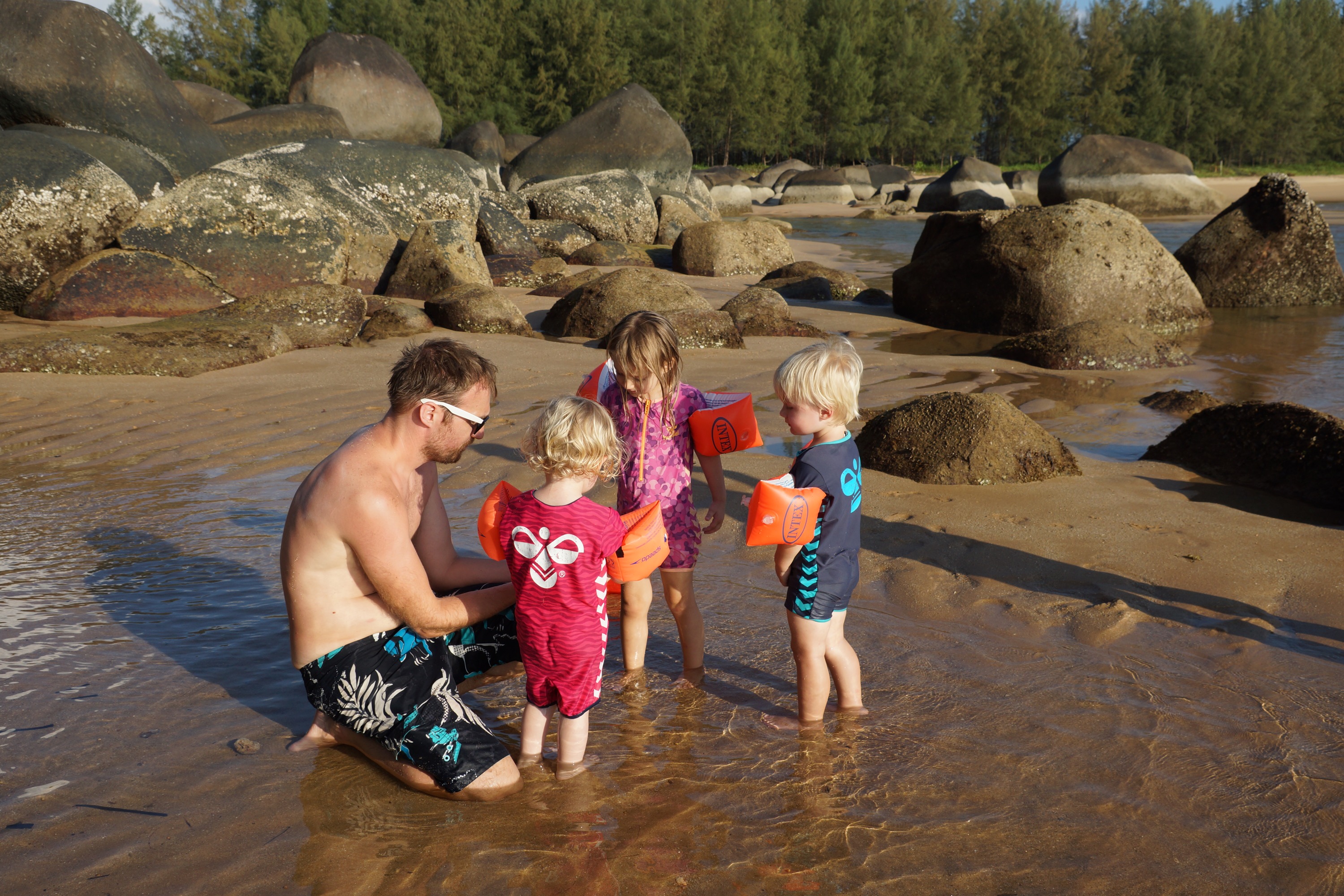 Vi havde nogle virkelig dejlige dage på Koh Ngai. Er man til bountyøer uden mulighed for de store aktiviteter er øen i den grad anbefalelsesværdig. Man skal dog være opmærksom på, at ved lavvande er det næsten umuligt at bade. Det var vi dog forberedte på, og for os passede det fint med badevand, der til tider var i børnedybde.
