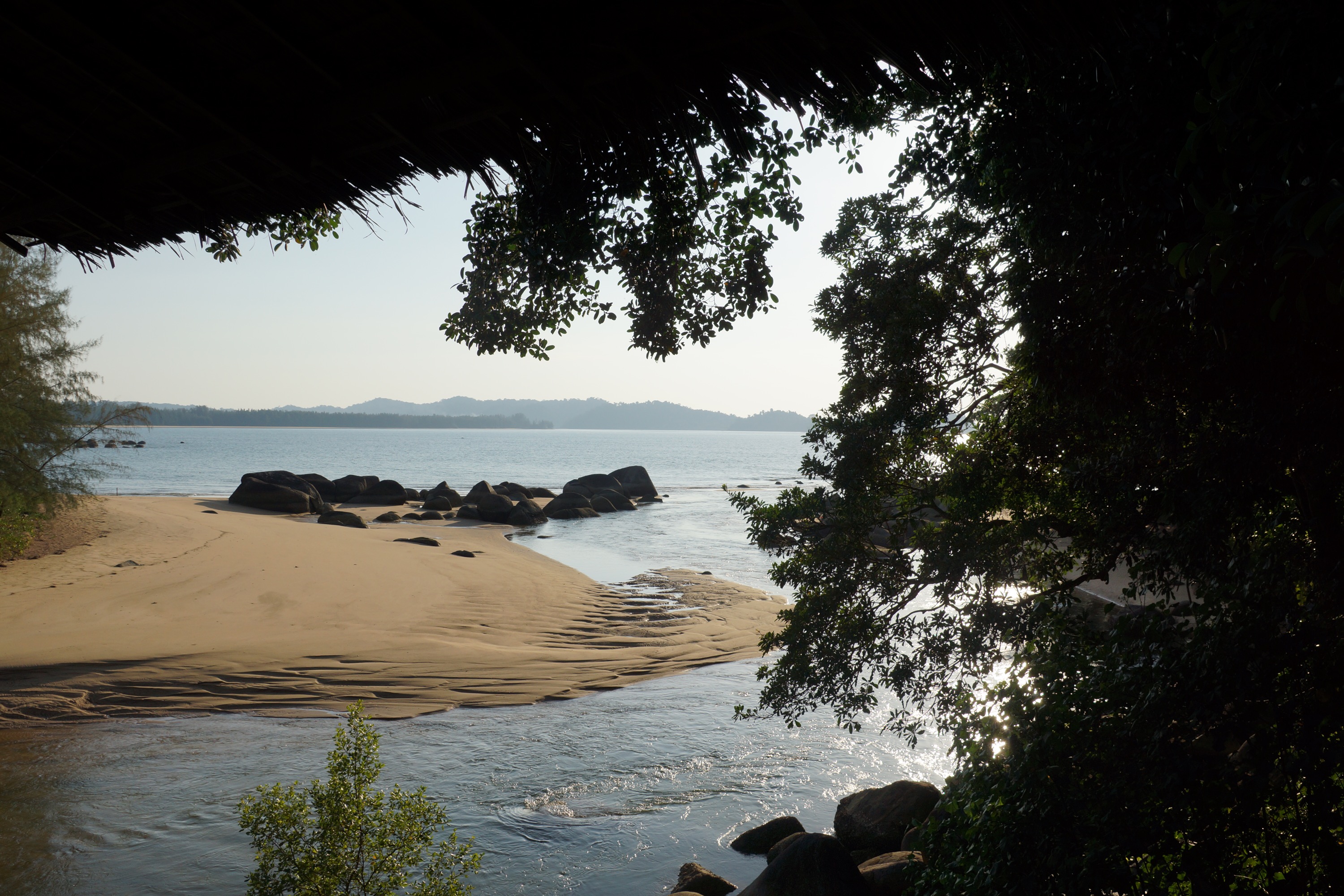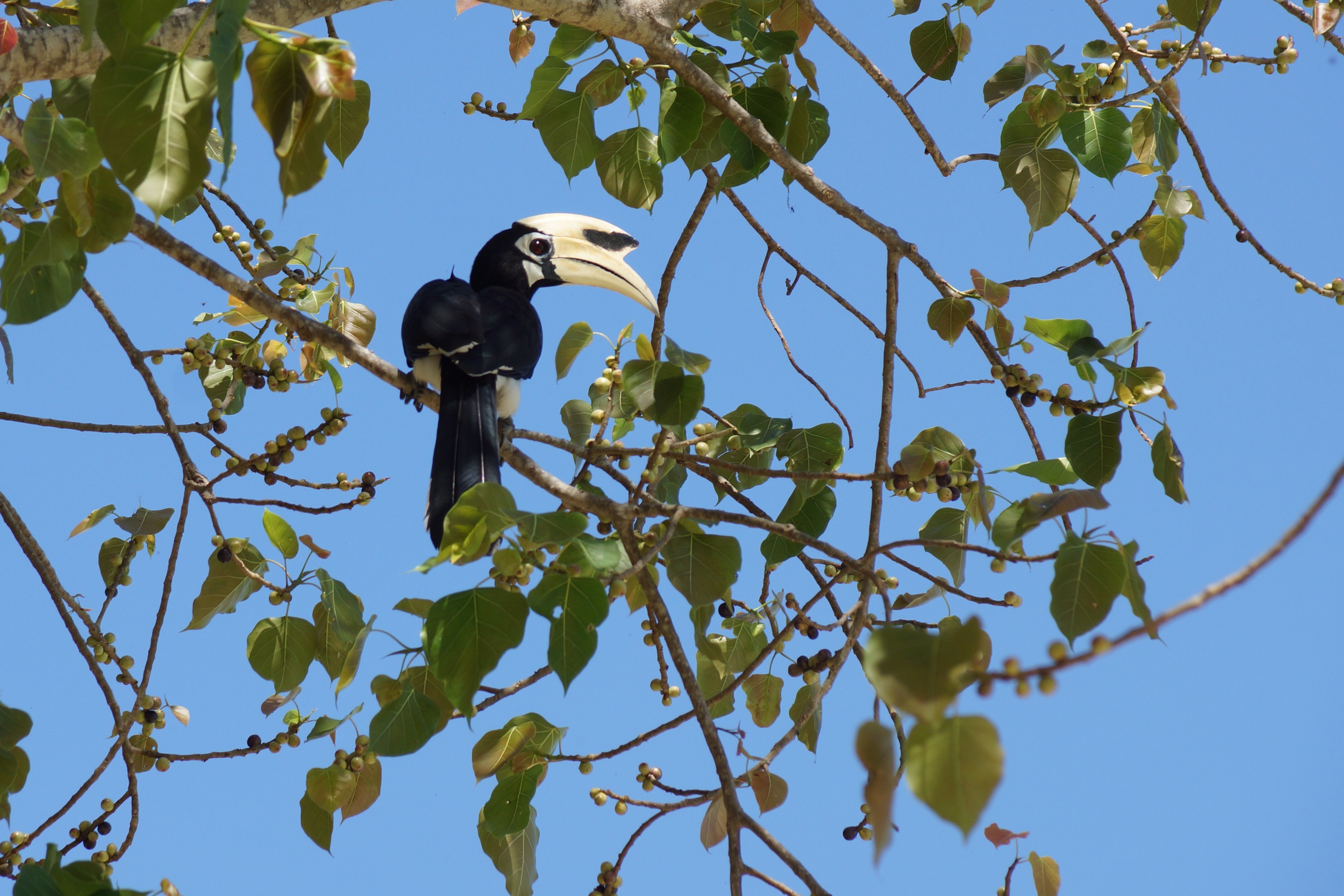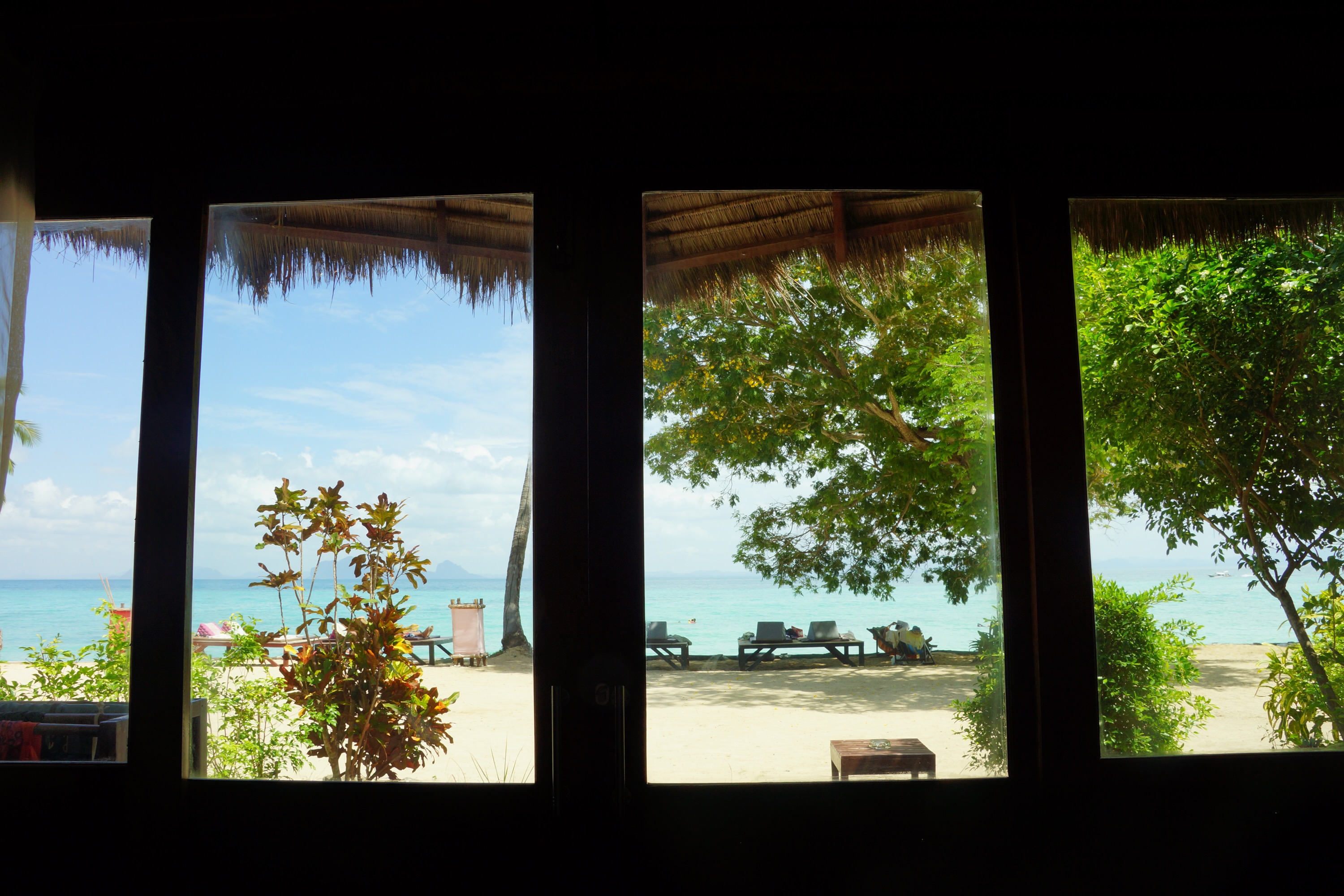 Vi fandt os hurtigt godt til rette på dette sted og fandt en rytme, hvor vi tilbragte formiddagene i det krystalklare vand, de varme middagstimer på restauranten og i hytten, mens eftermiddagene gik med mere badning eller gåture langs den smukke strand. På øen boede en stor koloni af næsehornsfugle, der kom ned på stranden for at spise deres yndlingsfrugter.