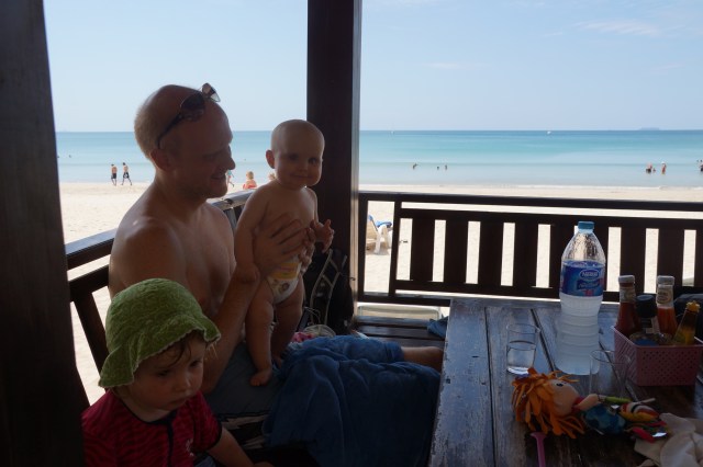 Vi var nået til et punkt, hvor vi godt kunne bruge at få fyldt vores lager af bleer, vådservietter, solcreme og modermælkserstatning, som jo er til at finde der hvor turisterne er, så ved hjælp af Tripadvisor indlogerede vi os på Lanta Sea House.