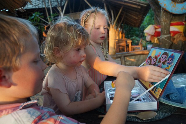 De fleste aftener tilbragte vi på naboresortet Coco Cottages til alles store fornøjelse. Det flinke personale legede med Agnes mens vi fik noget af rejsens bedste mad.